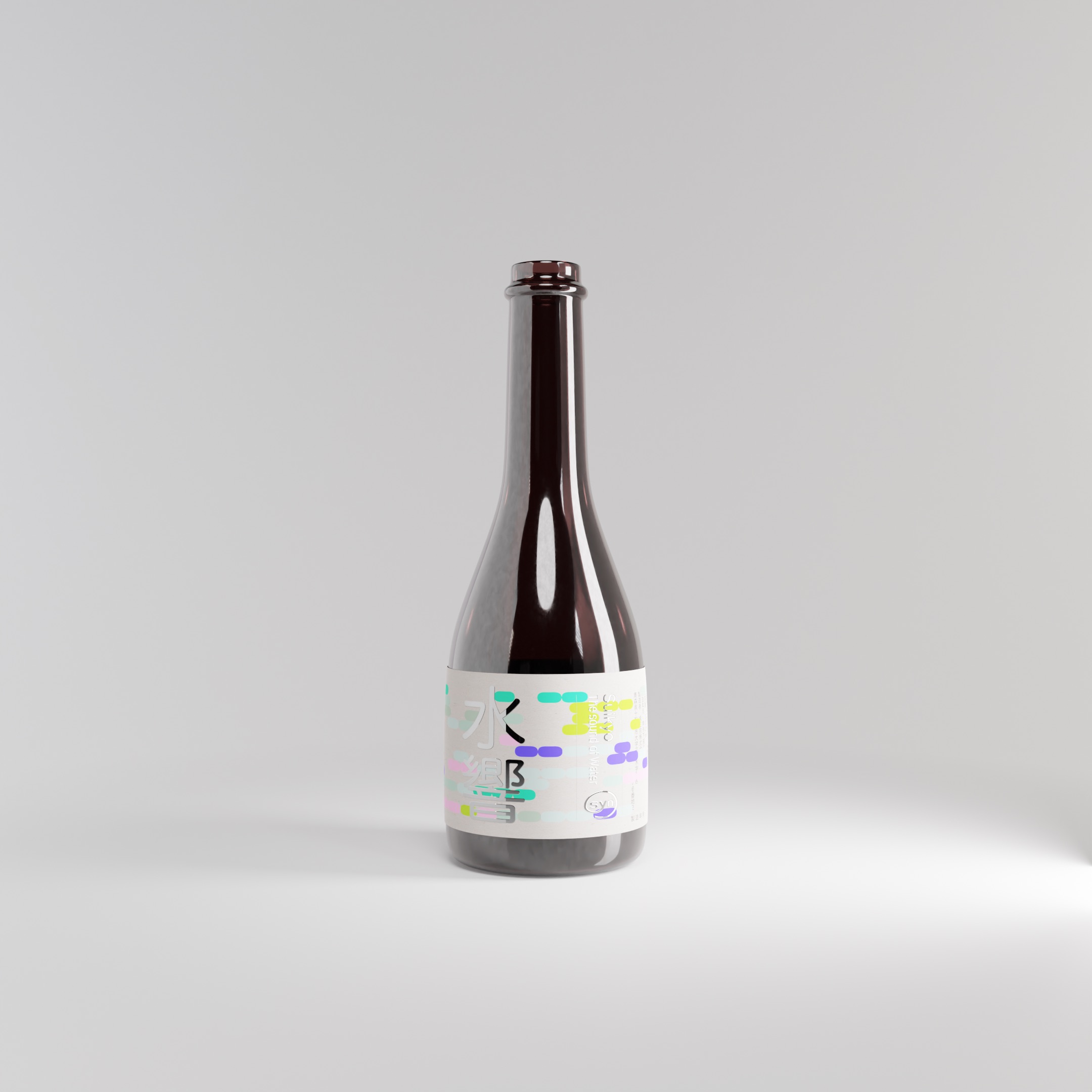 The artworks were generated using a code that harnesses image generation logic to create shapes, and colour them, using fields recording an on-site photographs captured by Nick Wood, at Oirase Gorge in Aomori, Japan. The waters from this lake are used to craft the sake.